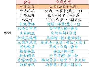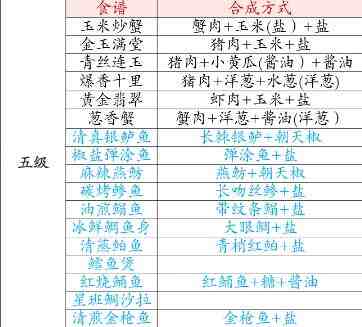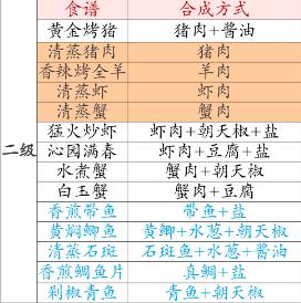 解忧小村落1-5级菜谱大全