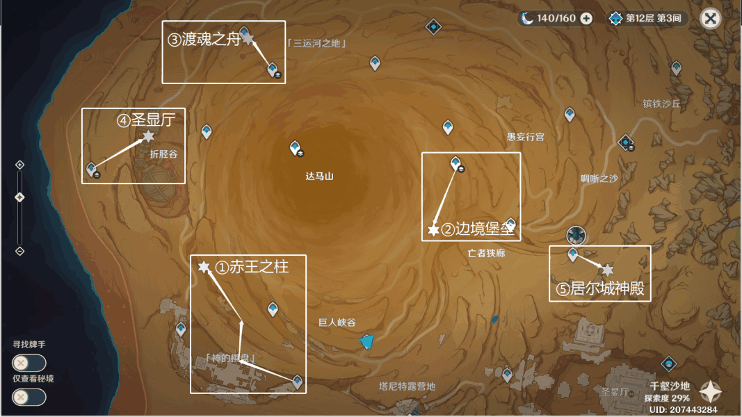 - 传送神的棋盘锚点,往地图西方飞,前往图中遗迹下大树。