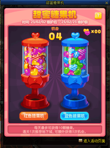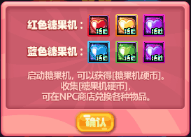 可以在红色/蓝色糖果机中二选一抽取,随机获得一种糖果。