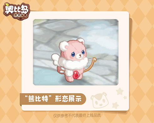 「熊比特」全身如同棉花一般软绵,粉白相间的配色,十分惹人喜爱。它的背后还有一对小小的翅膀,莫非它就是爱神丘比特的化身?喜欢亲近奥比的它,会出没在奥比岛各处,瞄准目标,发射爱心之箭噢!