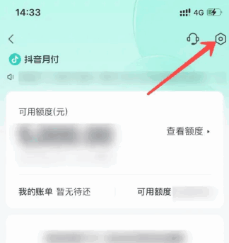 - 点击抖音月付设置图标之后,在抖音月付的页面里再点击右上角的 设置 图标;