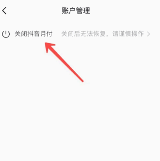 - 点击进入账户管理之后,就可以看到有关闭抖音月付的功能,点击即可关闭,但是再次开启需要重新审核认证。