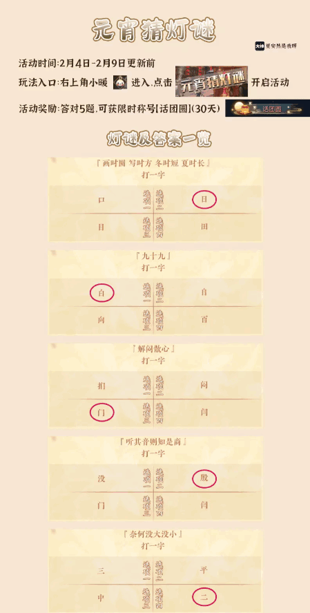 逆水寒2023元宵灯谜答案一览活动时间:至2月9日更新前