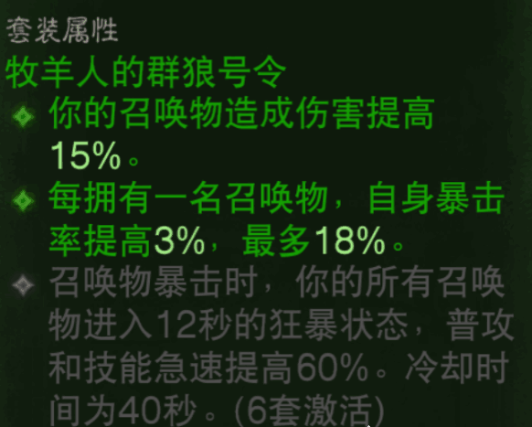 推荐理由:石魔、遗言等属性可以增加召唤物的伤害和承受伤害,是非常适合召唤流的套装。