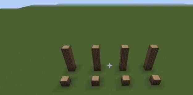 - 先用橡木做柱子,位置摆放看图中的一样。也可以换成其他木头;