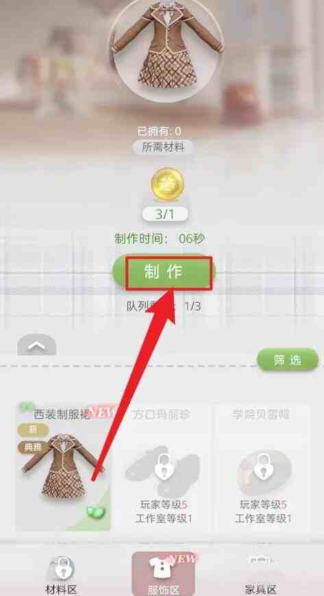 - 最后在制作页面中点击服饰款式消耗材料点击制作即可。