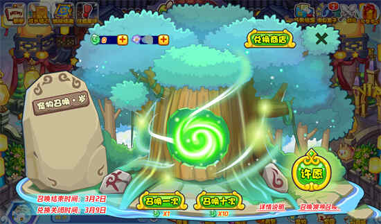 - 10次召唤必得宠物,本次活动召唤概率并不低,有保底,每天上限召唤200次。