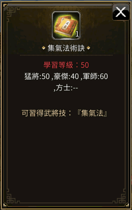 稀有掉落:集气法术诀、兽鬼召唤术诀、虎颚腕、全阵形精通书、烈风秘笈、破城m术诀、南蛮盾、避强化法、羊毛围巾