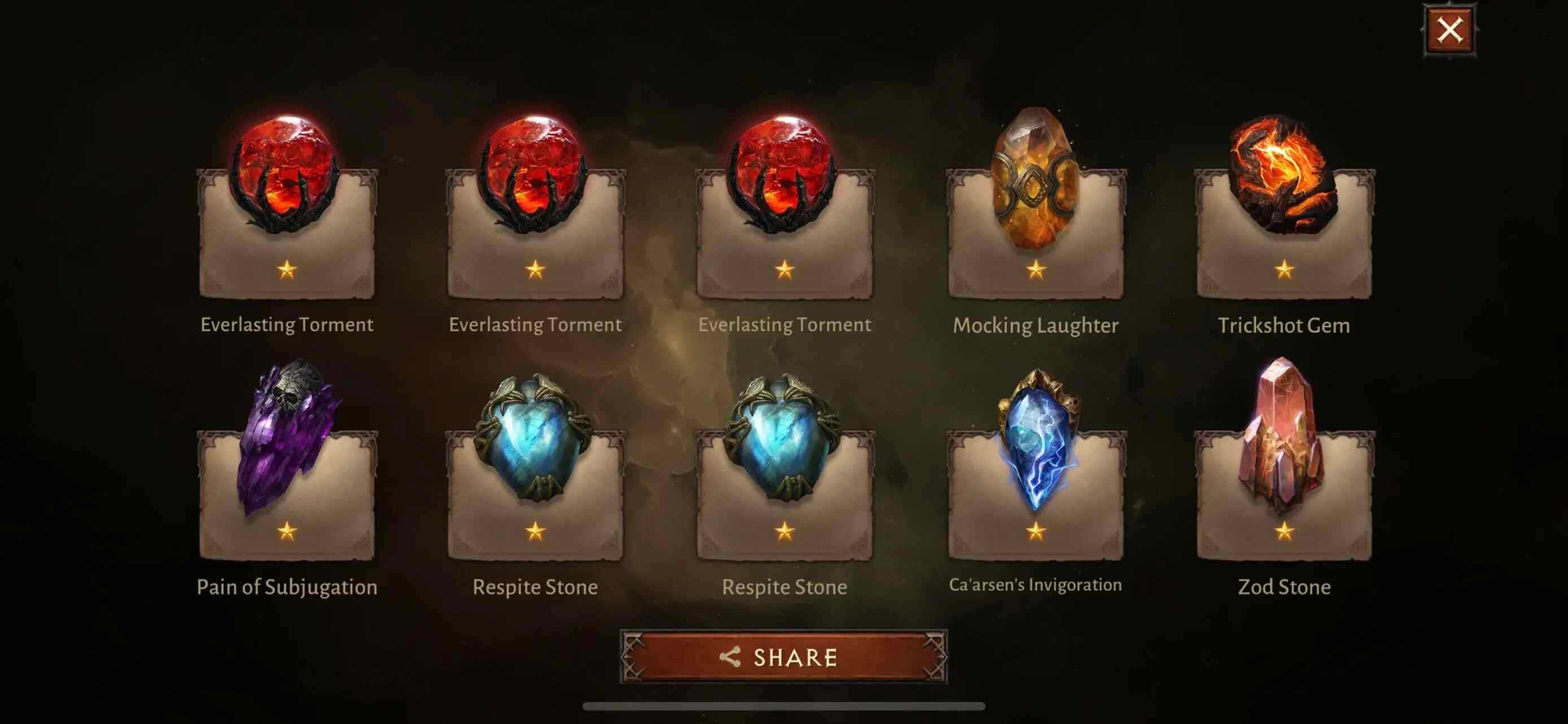 阴影回响 + 神之恩赐 + 腐蚀之源 + 凤凰灰烬 + 石像鬼魂石 + 斗志翡翠