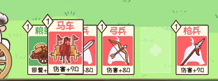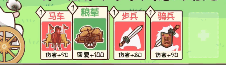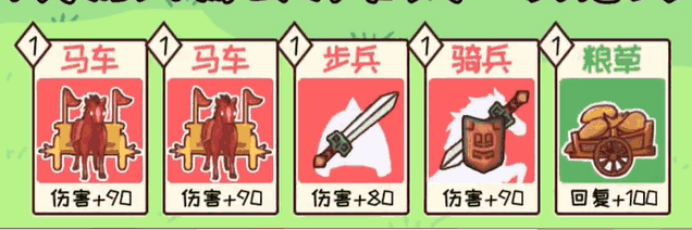 - 之后第三轮牌粮草与马车合成亮亮快递打出,剩下一个兵力任意打出。