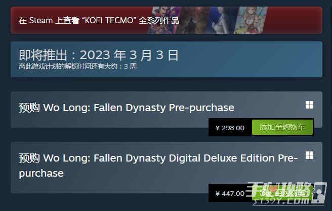 商店页面:https://store.steampowered.com/app/1448440/Wo_Long_Fallen_Dynasty/