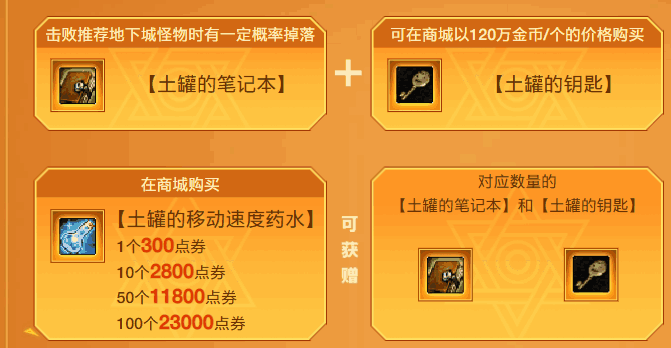 - 进入商城购买土罐的移动速度药水就可以获得土罐盒子。