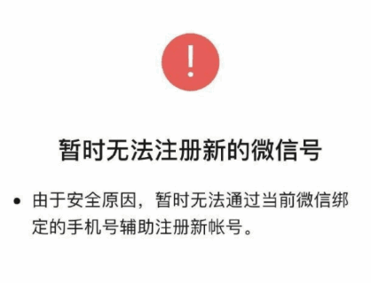 微信由于安全原因,暂时无法通过当前微信绑定的手机号辅助注册新账号是怎么回事