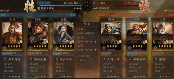 - 如果是肝帝玩家或者时间较多的玩家,那么陷阵营换藤甲兵拿来吃菜刀也是没问题的,即便是脸黑真的碰到了点火队伍,有草船借箭+临敌不乱+程普自带的概率控制,也不是完全没有赢的可能!这个队伍的优势之一在于前期就可以做到15御出门开荒,然后不用考虑转型问题,既能打地也能打架,快速发育成型,然后出第二队!