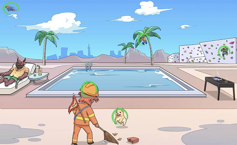 - 美人鱼 将烧烤架上的鱼拖到水池中即可, 泰坦尼克号 将光头拖到美人鱼即可,其他的也是需要组合。