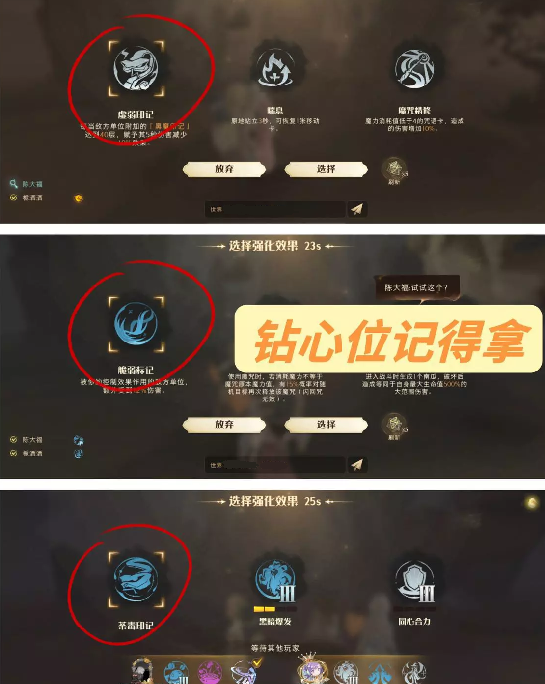 辅c有3个buff要拿,脆弱印记、茶毒印记、蚀骨印记