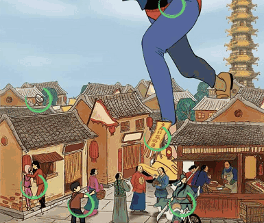 - 蓝色的巨人关卡中所有不和谐的地方分别为: 飞机、退退退大妈、卫星锅、内裤外穿、关羽骑车、进击的兵长、壁咚、蓝色妖姬、变身器、夕阳红旅游