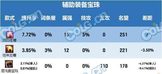 由于左槽宝珠提升非常大,如果是2022年的双尊在更换左槽的情况下,相对于2023年的双尊伤害差距为5.09%,尚可接受。如果没更换左槽宝珠差距会被拉大到9.39%。不过名望的差距始终在430点以上,今年双尊的名望跨度也非常大。