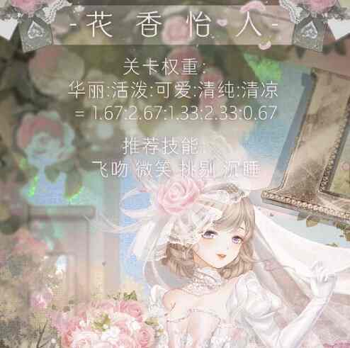 - 关卡权重: 华丽:活泼:可爱:清纯:清凉 = 1.67:2.67:1.33:2.33:0.67