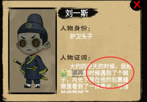 按照刘一斯的证词,不妨创造疑窦,明显月亮被无缺盖住,他何如不妨望见扒手包裹内部的器械呢,是以他便是囚徒。