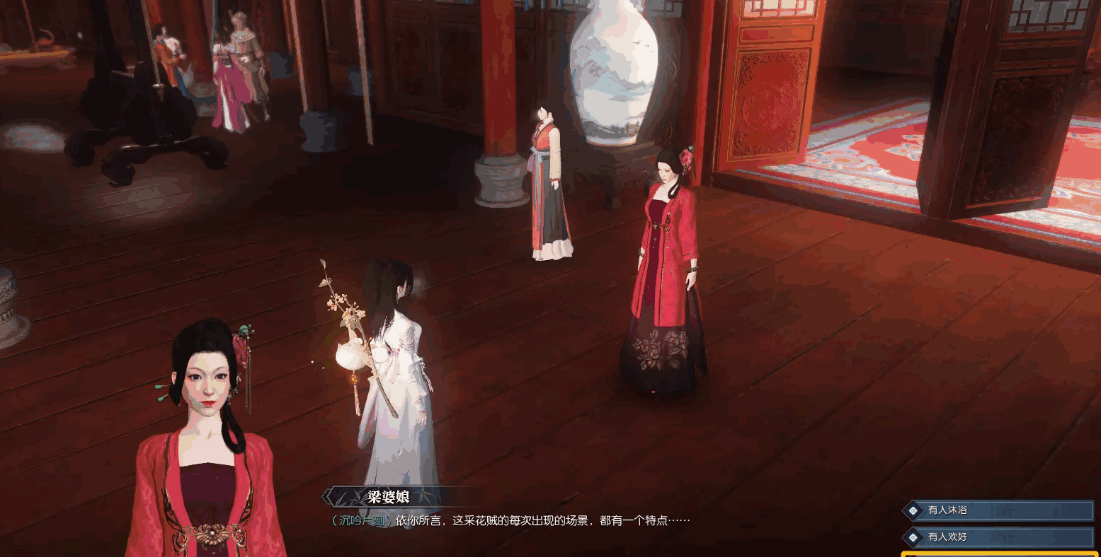 - 梁婆娘那选“多人在场”;6、根据血迹找黑衣人,他在506.626。过程需要花费650文买5个回神饮,最后给一个称号“笔底春风”。