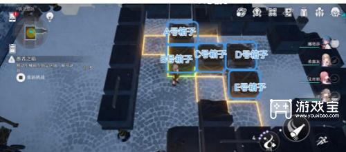 - 如图所示,将箱子标记为“A号箱子”、“C号箱子”、“B号箱子”、“D号箱子”、“E号箱子”, C号箱子向上移动1格,D号箱子向右移动1格,E号箱子向下移动1格,B号箱子向右移动1格,A号箱子向下移动1格,C号箱子向左移动1格,B号箱子向上移动1格,D号箱子向下移动1格,然后向左移动2格 ,解谜完成。