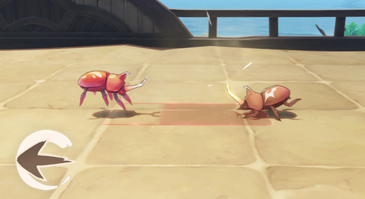 - 如果两只鬼兜虫同时发起攻击,我方将被撞倒,无法对对手造成伤害。注意发动攻击的时机,如果改变决策,可以取消蓄力,避免无谓的体力消耗。就是不要和对方硬碰硬,可以连着击退对手或适当后撤。