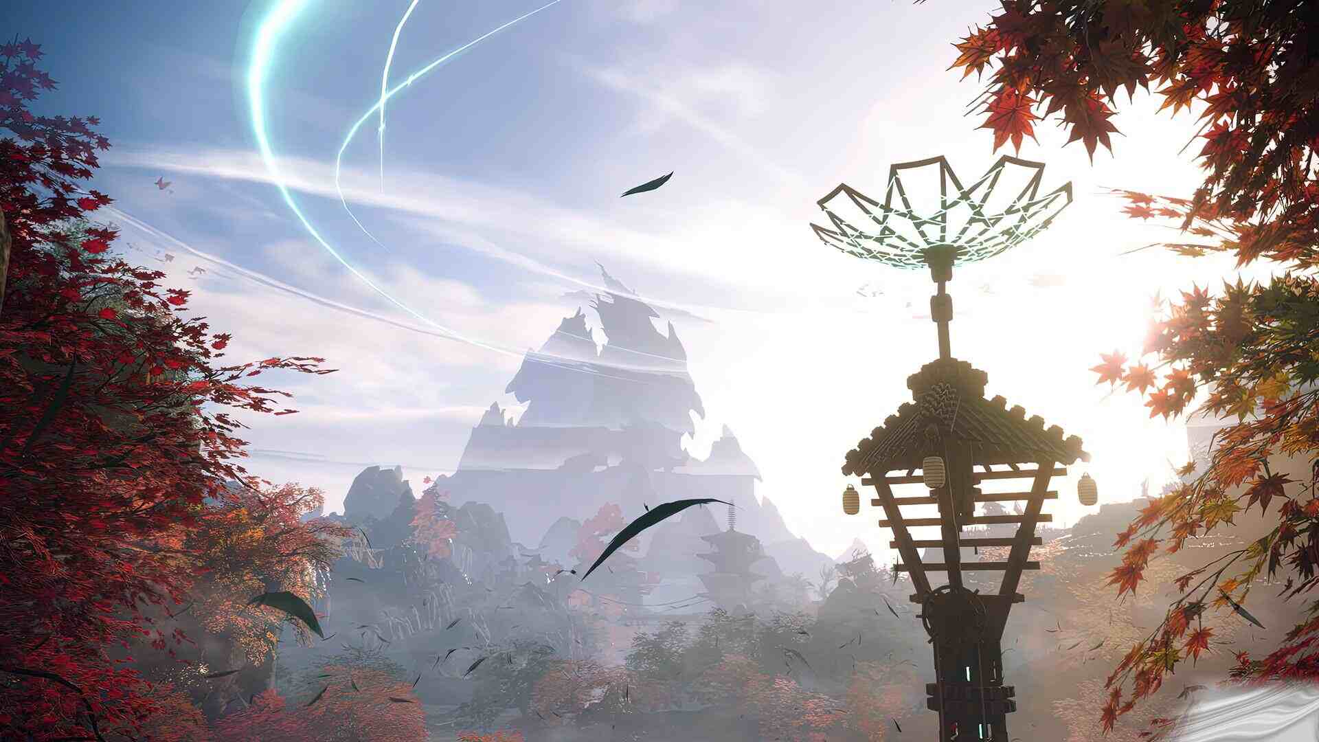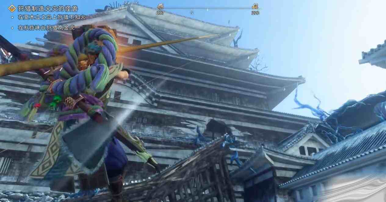 接着玩家使用龙棒滑行到天守阁顶楼。