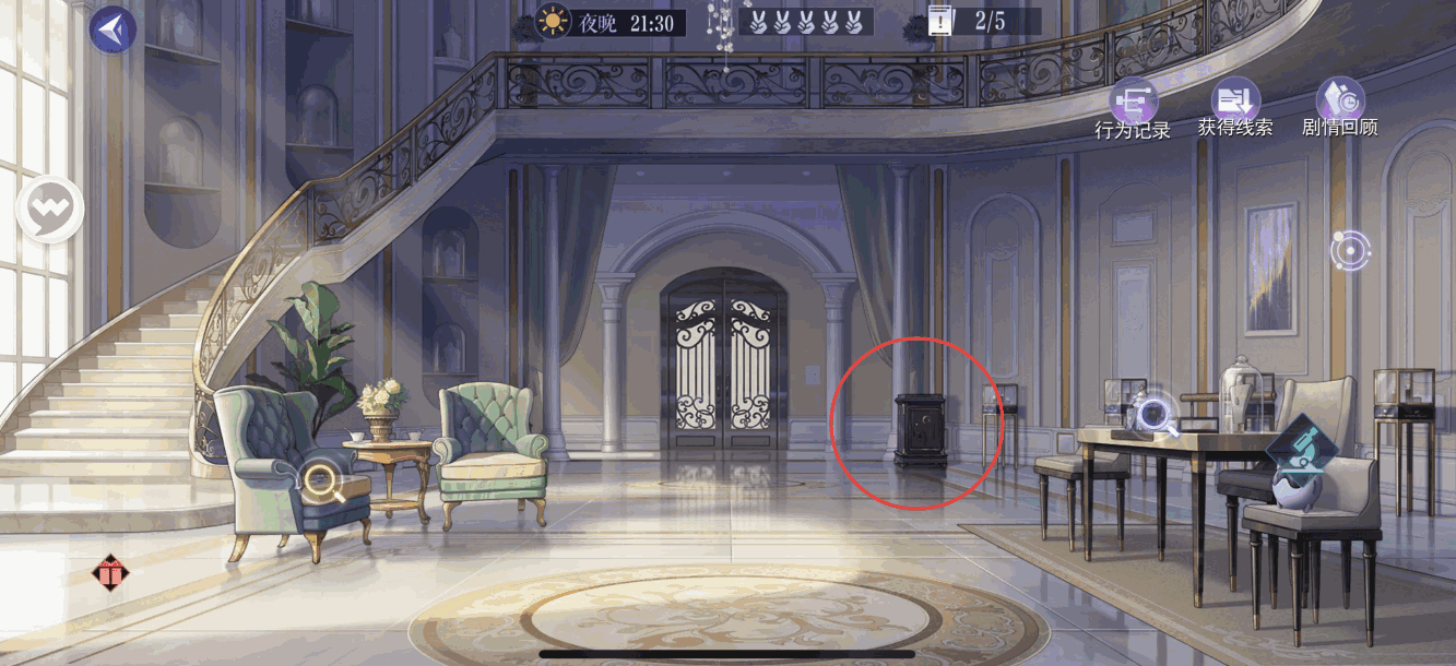 - 5、选择完后再点一次蓝色放大镜 —— 获得线索:散落的笔记2