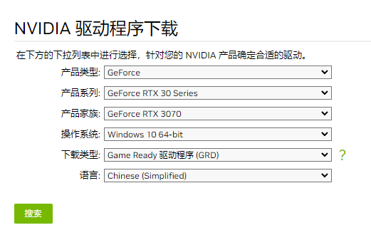- 前往NVIDIA官网,查询显卡型号对应的最新驱动版本,若不是最新请下载更新。