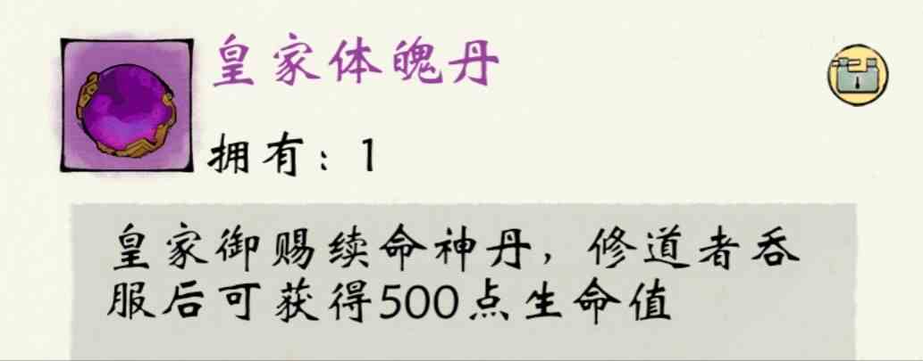 (2)皇室:皇家锦盒,内含皇家御赐续命神丹,名为皇家体魄丹,服用可获得500点生命值,数值较低没有影响也不大。