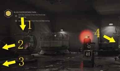 在主线目标“在那草木疯长的园区…”中,我们需要寻找4个罐子。其中一个罐子所在的房间内有很多水箱,这些水箱内都关着动物,房间中央还有一个操作板,上面是一个动物九宫格。