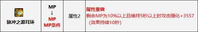 平衡后MP流不再依赖腰带的攻击回蓝了,取而代之更好的选择是黑龙手+音律戒的组合。旋律戒指可以增强30%装备回蓝,配合黑龙手可以让可用蓝量增加10%;这个组合在30%以上是每秒回3.9%蓝,低于30%是每秒回5.2%;