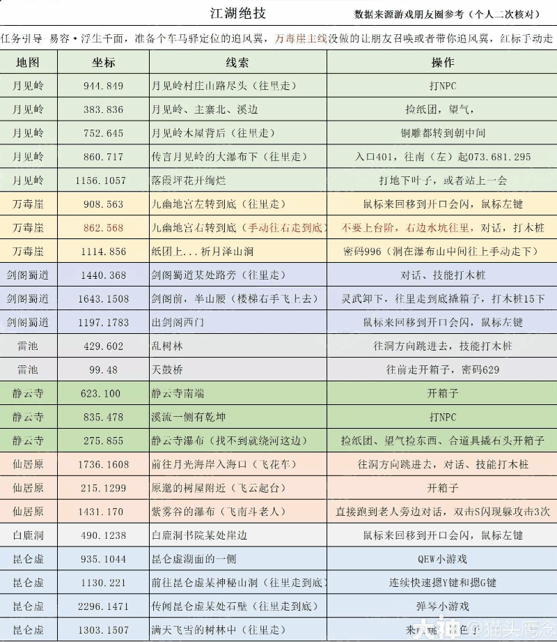 逆水寒江湖绝技奇遇探索坐标详细介绍数据来源游戏朋友圈参考(个人二次核对)