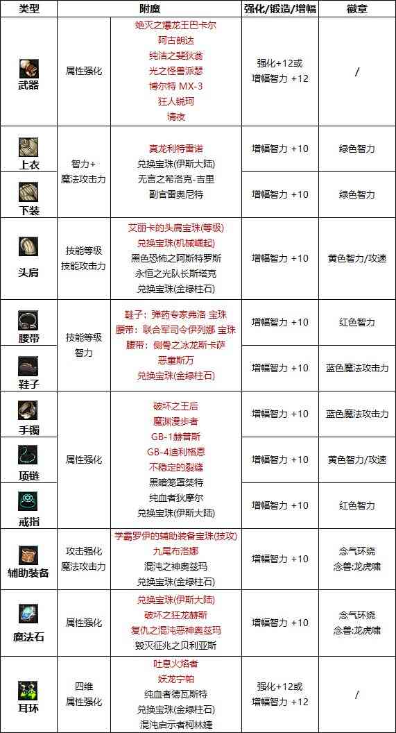DNF巴卡尔女气功附魔推荐- 装备打造