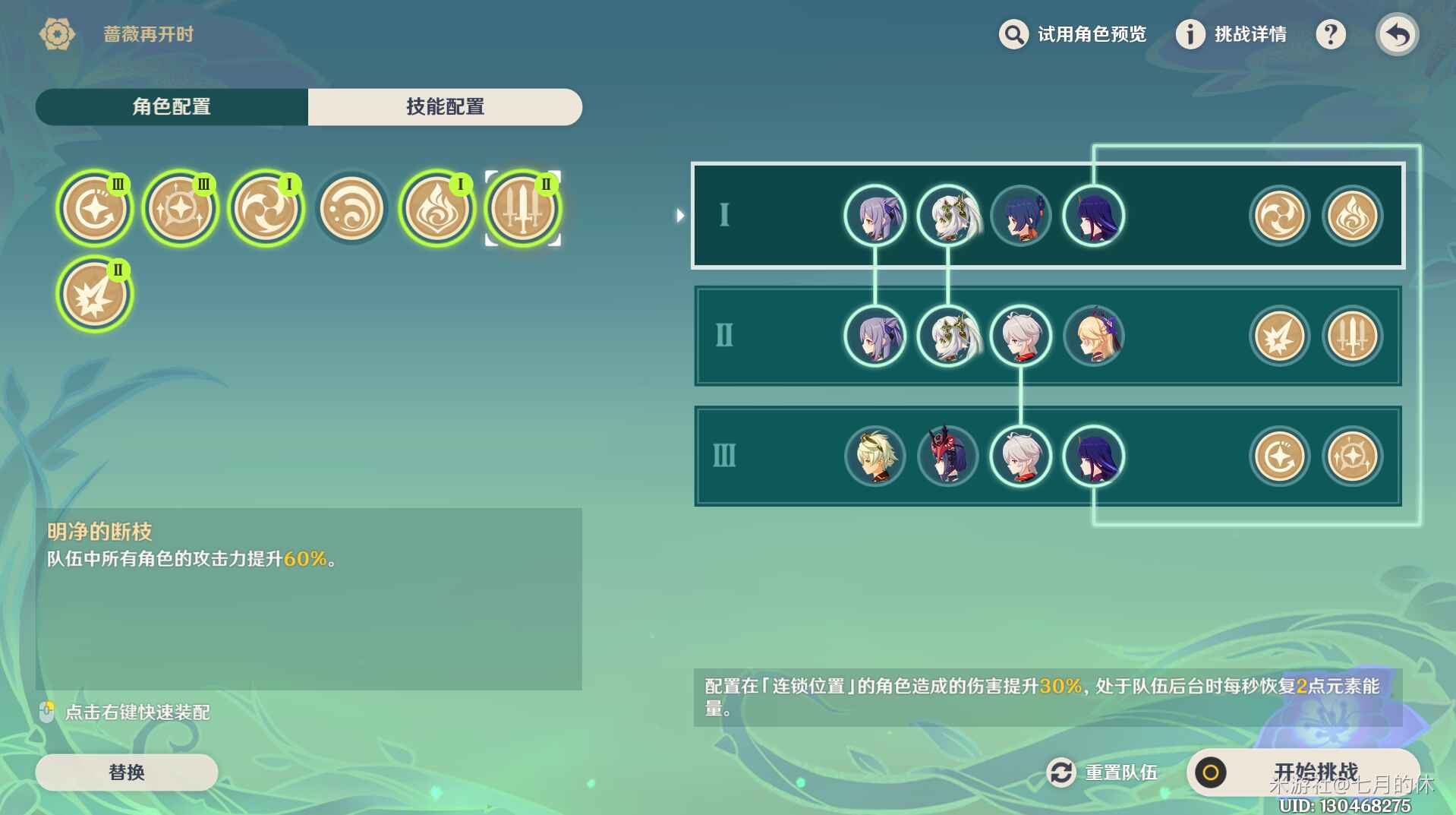 老规矩:连锁位置一般优先放置主c吃buff,其次副c,及多队伍抢手的角色。