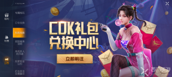 - 点击口令兑换界面的 立即前往 ,然后输入获取的口令码,并且绑定自己的游戏信息就可以领取了。