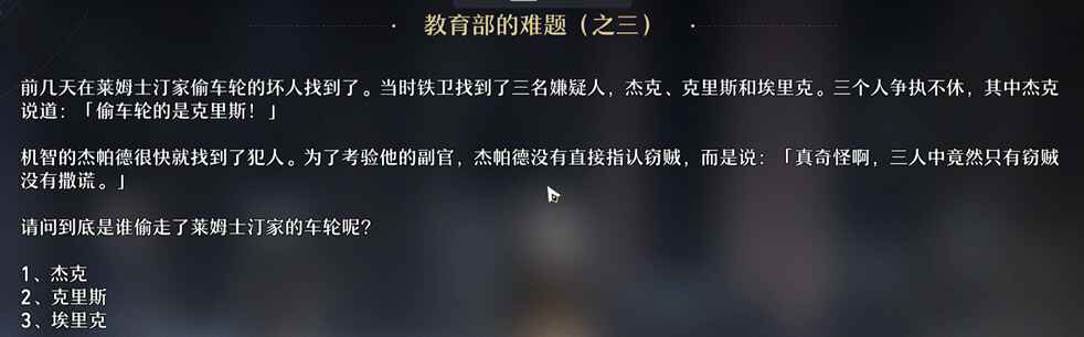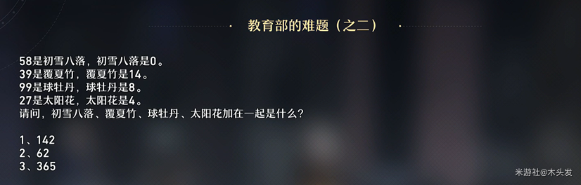 崩坏星穹铁道教育部的难题第三天答案是什么