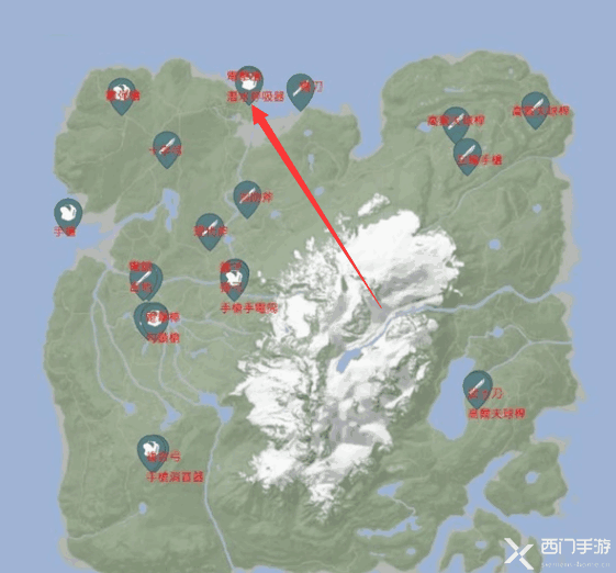 - 电击枪是在雪山下面一点点的洞穴中,大概位置如下图: