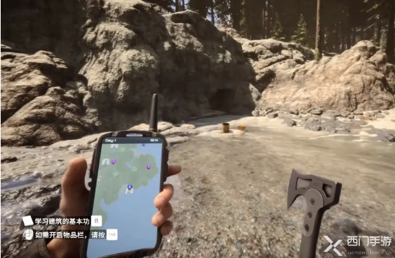 - 玩家使用斧子把木板敲碎进入洞穴,然后往右侧走;