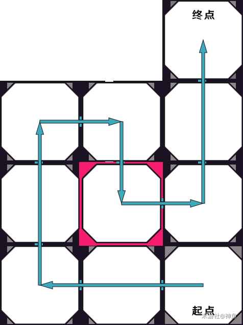 透明桥(学名叫「不世之材」)的解谜和原神稻妻的走地板差不多:从起点出发, 不能重复踩地板,走到终点即可。