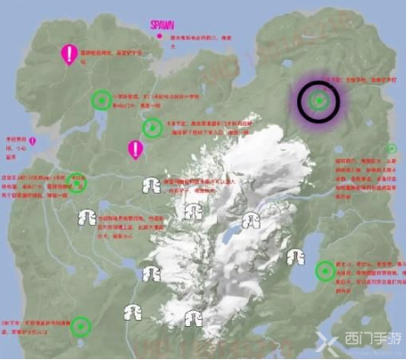 - 这个就是雪山的位置,玩家前往之后在地图中会有定位,跟着定位找;