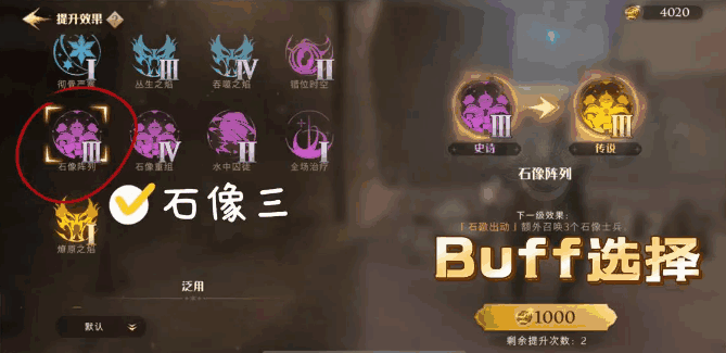 - 除了石墩三石像列阵和愈合二多重治疗升满外,其他全升通用buff。