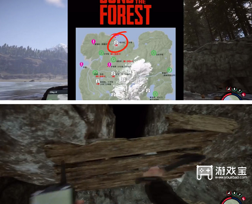 森林之子水下呼吸器详细位置攻略- 首先按照屏幕上地图位置来到这个洞口,噼开门口的木板一道往里走就行,玩家可以使用手电筒看路;