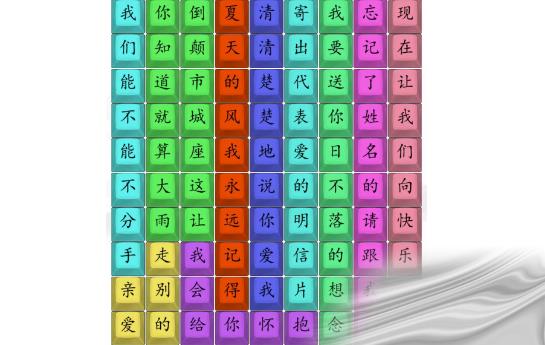 - 这一关的难度比较低,基本上都可以竖着一列直接连接,歌词非常好找