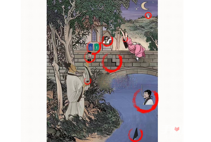 - 举头望明月关卡不和谐是:直尺、垃圾桶、方块、杜甫、红酒杯、夜毛、白居易、手机、大白鲨、二哈