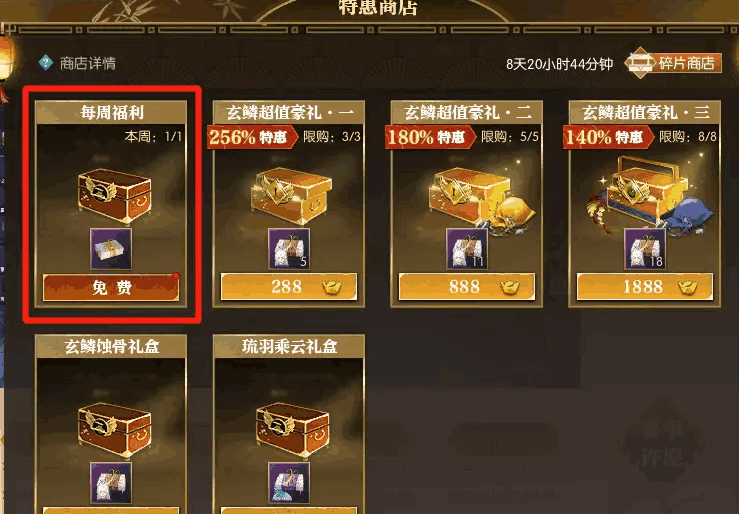 活动期间,每周可以领取一个免费的福利箱子,一共可以获得如图2。