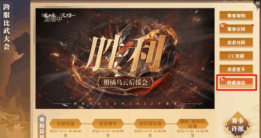 这次的比武,多了一个特惠商店,不管有没有买天下第一小册子,都可以购买!每周白嫖一个箱子。从游戏主界面右上角的 武 可以进入,如图1。