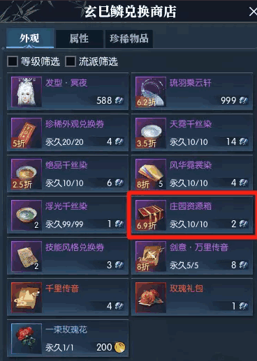 重点来了!如果你拥有侠侣小号或者工具人的话,小号获得的玄巳鳞可以换庄园资源箱,在你自己的庄园使用,这样你可以白嫖2个资源箱哦!
