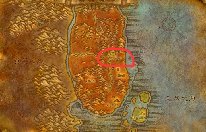 魔兽世界剃刀岭在哪剃刀岭在地图上有文字标注,位置如图所示: